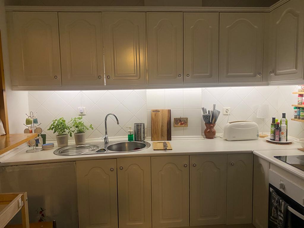 Keittiössä uuni sekä tarjoilu luukku joka avaa keittiön olohuoneeseen.