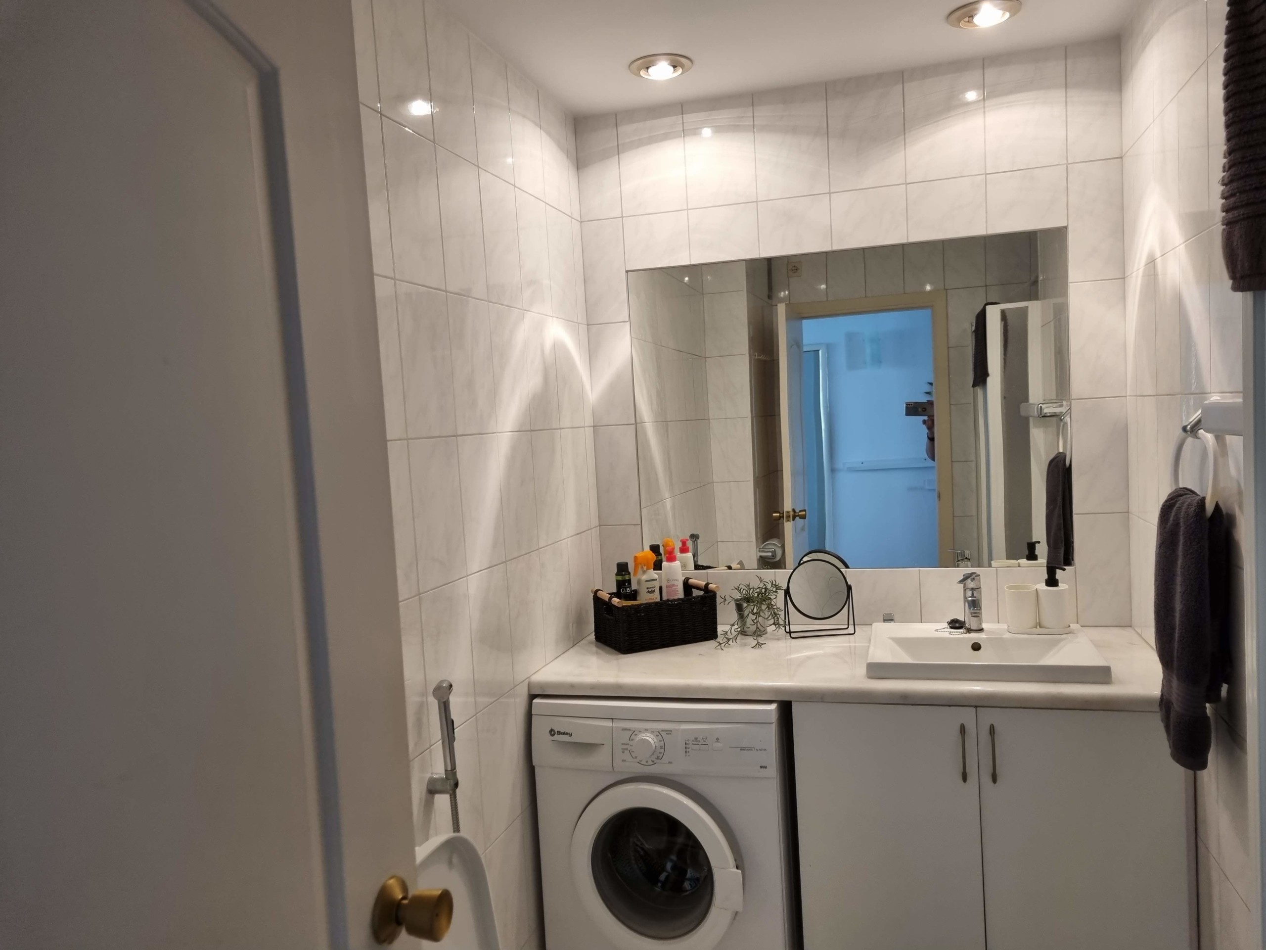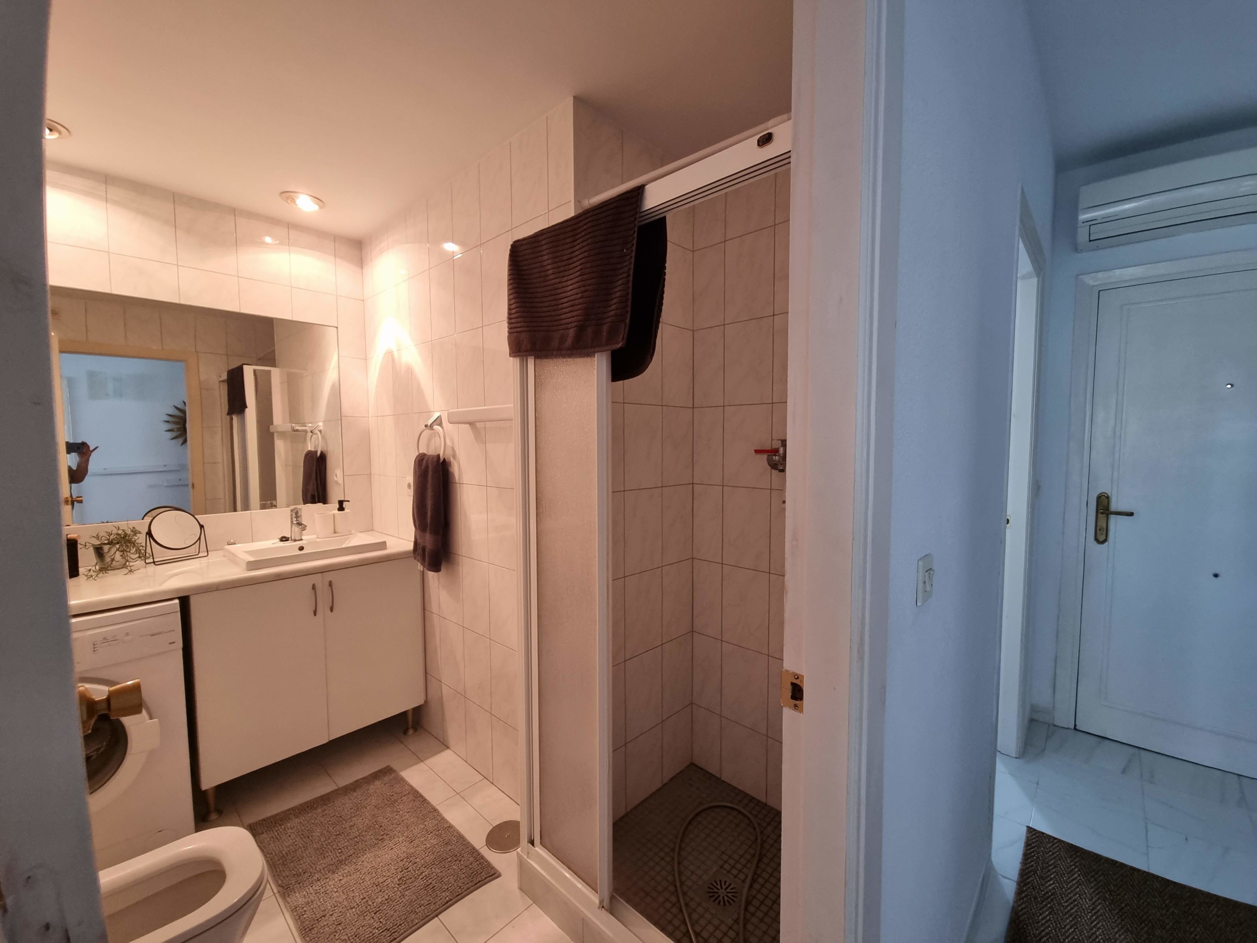 Kylpyhuoneessa on suihku, bidee ja pesukone. Asuntoon tuo lisätilaa lasitettu etelä/länsi suuntainen parveke, sivuttaisella merinäköalalla.