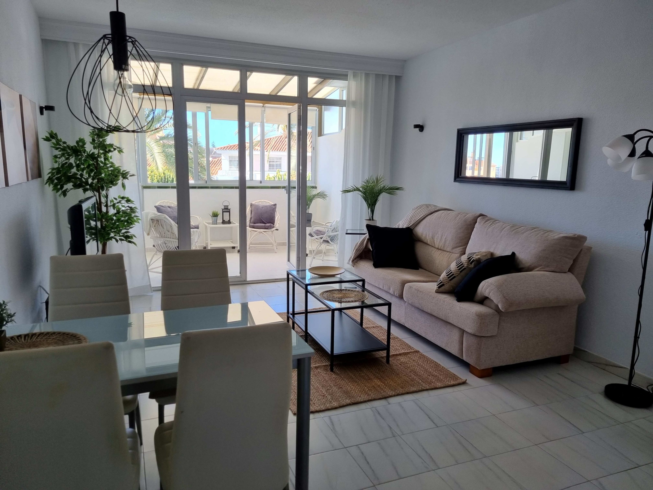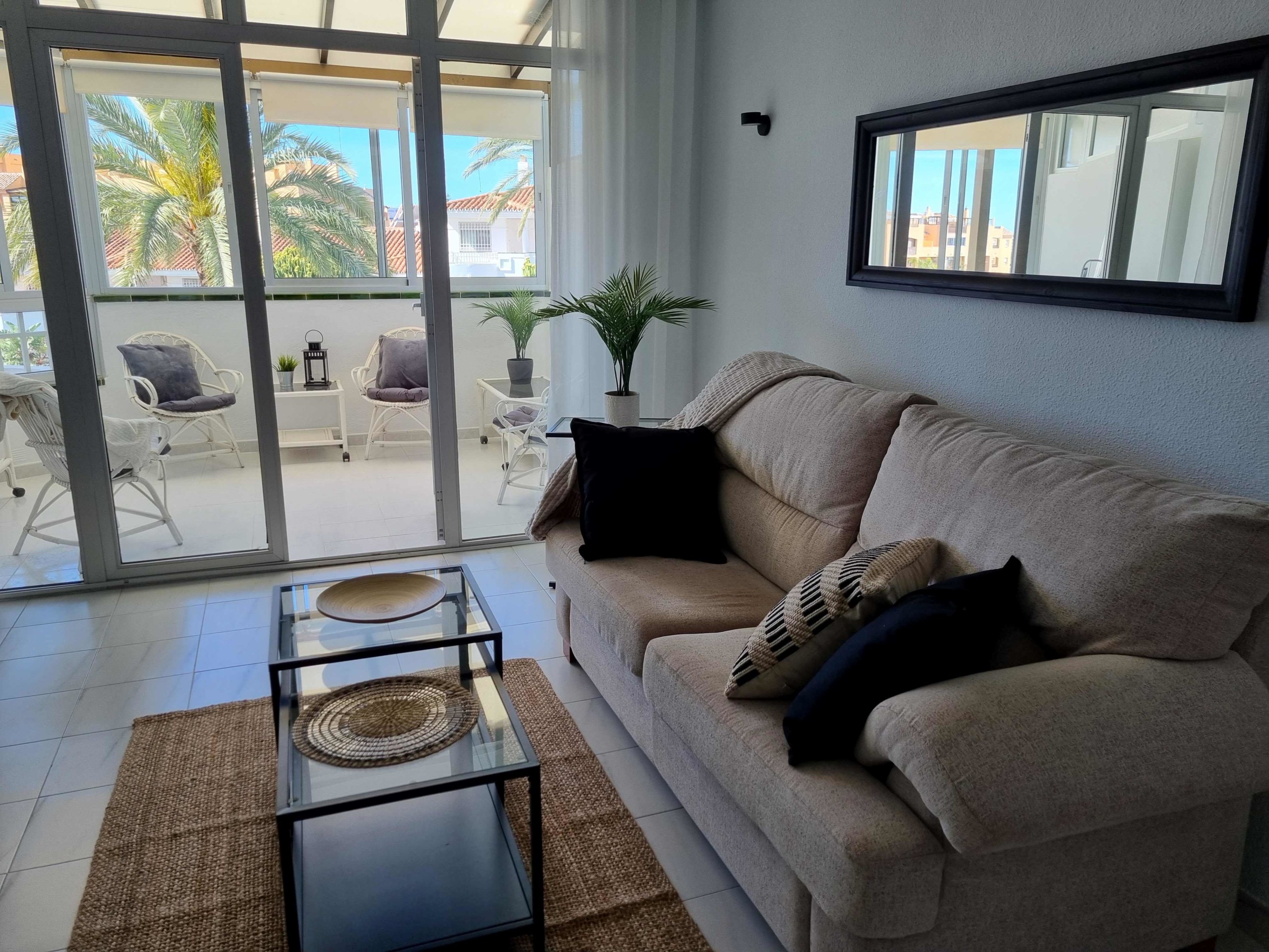 Skandinaaviseen tyylin kauniisti sisustettu 1 makuuhuoneen asunto suositussa Girasol -taloyhtiössä, Los Pacosissa, lähellä suomalaista koulua.