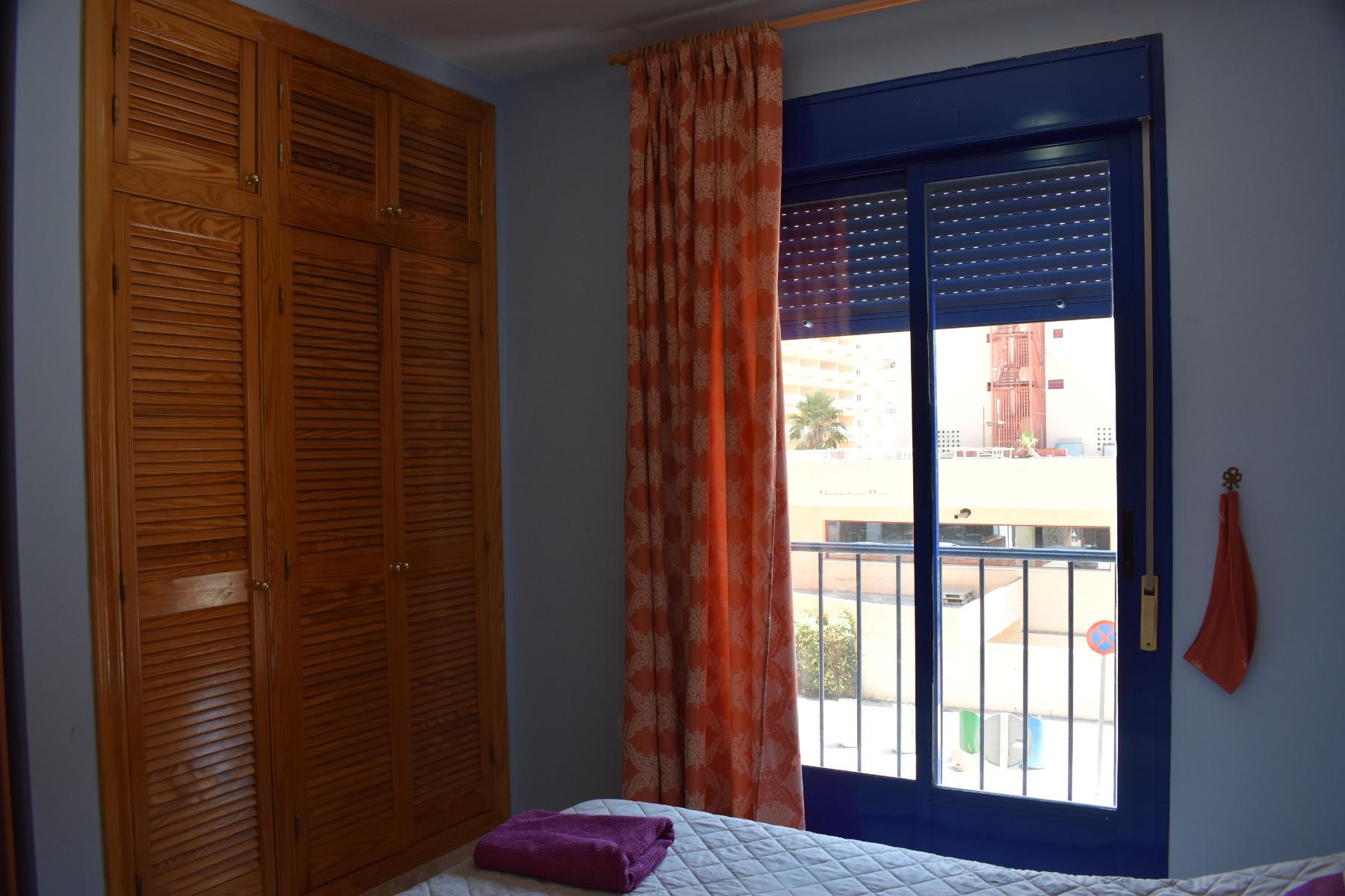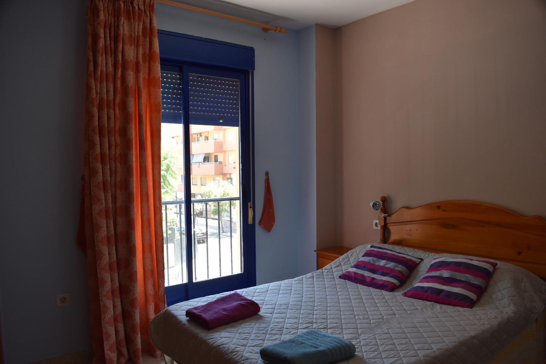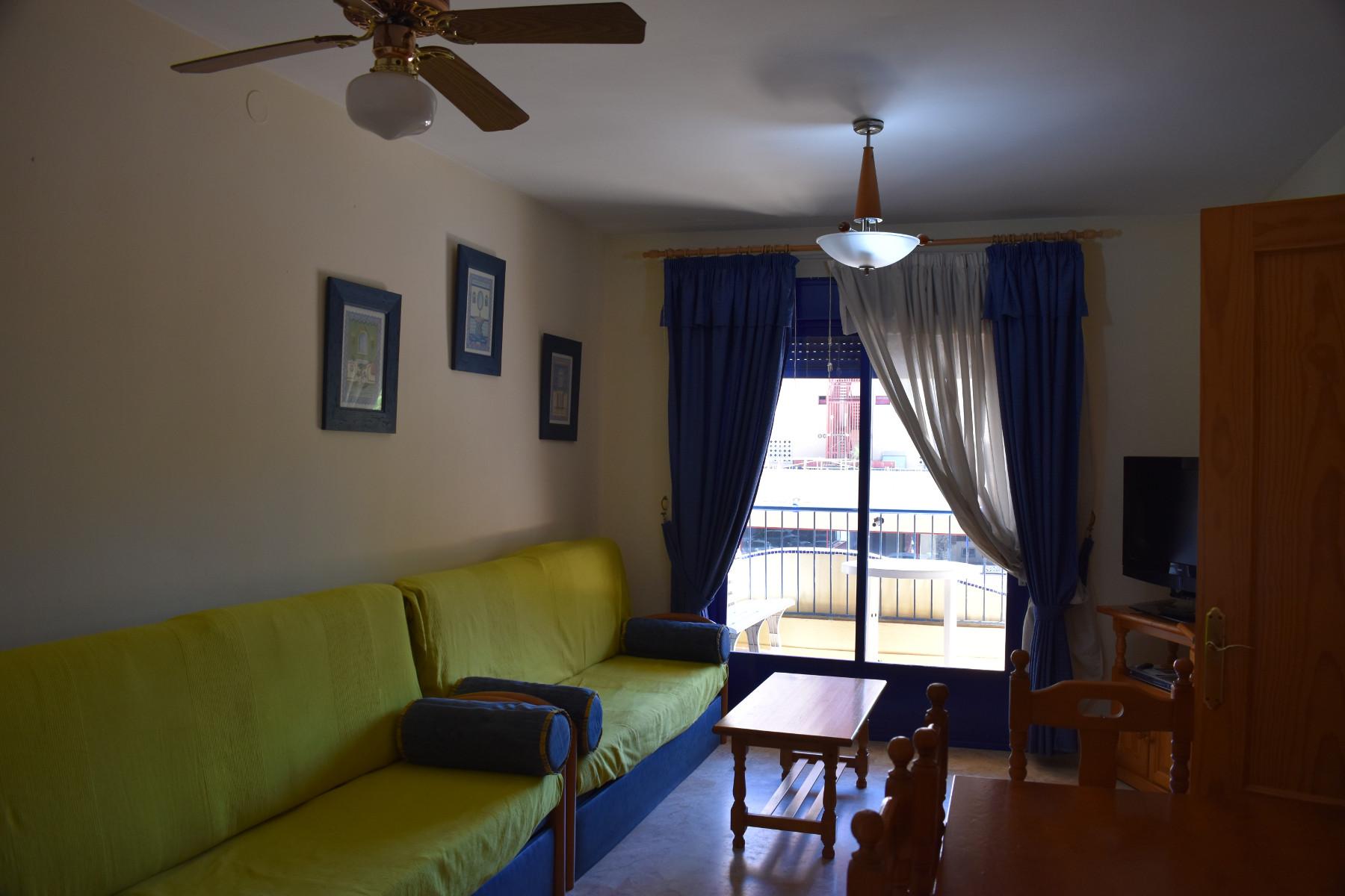 Keskeisellä paikalla Los Bolichesissa sijaitseva kahden makuuhuoneen ensimmäisen kerroksen huoneisto (suomalaisittain 2. kerros), jossa tilava olohuone/ruokailutila ja etelään avautuva pikku parveke. Toisessa kylpyhuoneessa suihku ja toisessa amme. Keittiössä sähköhella.