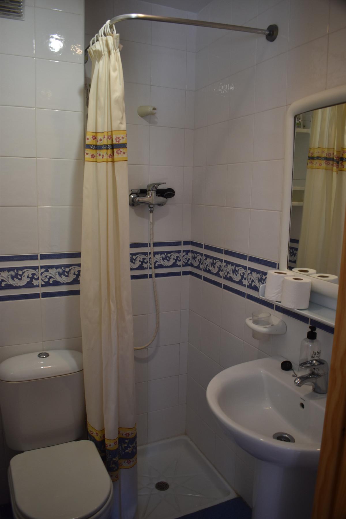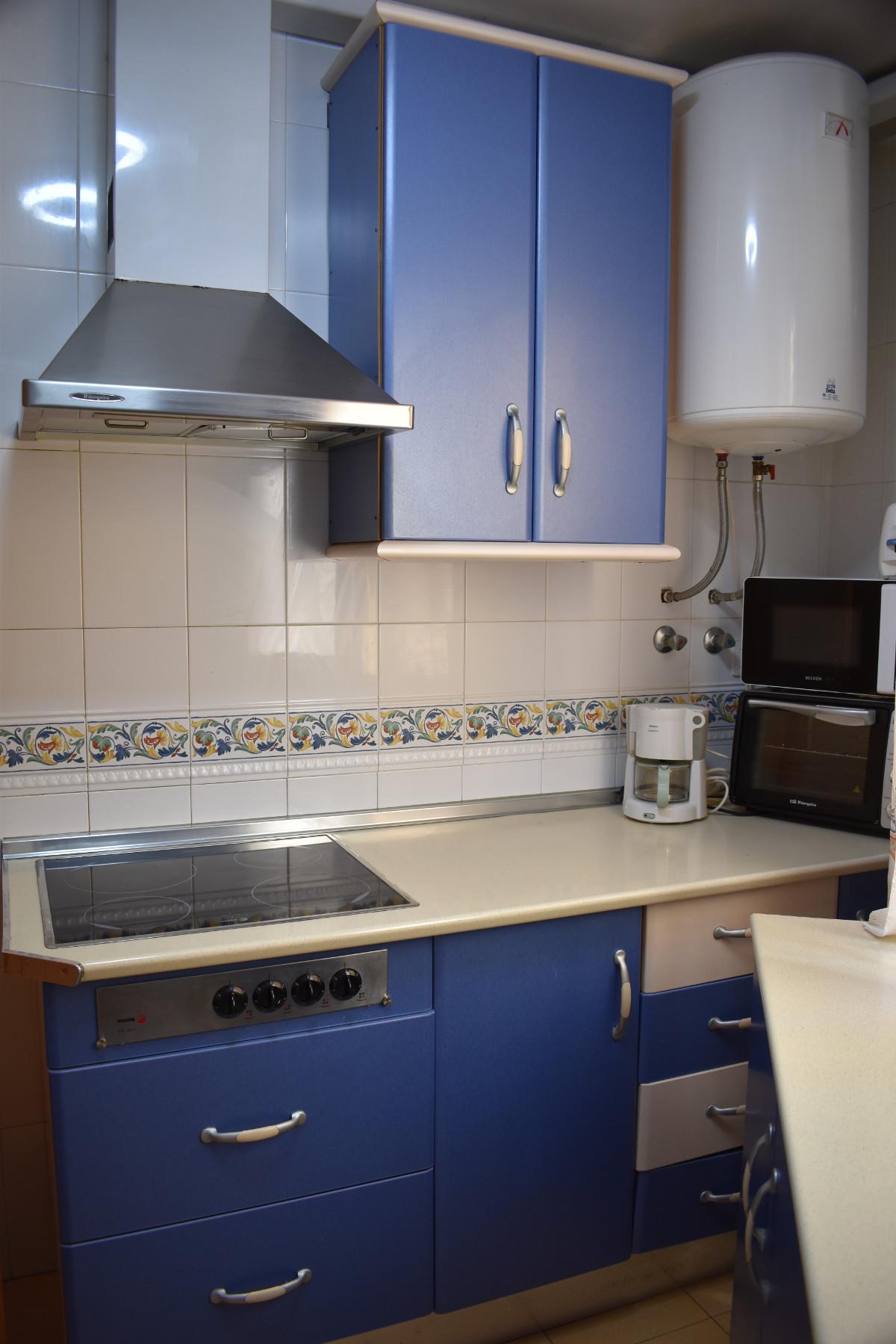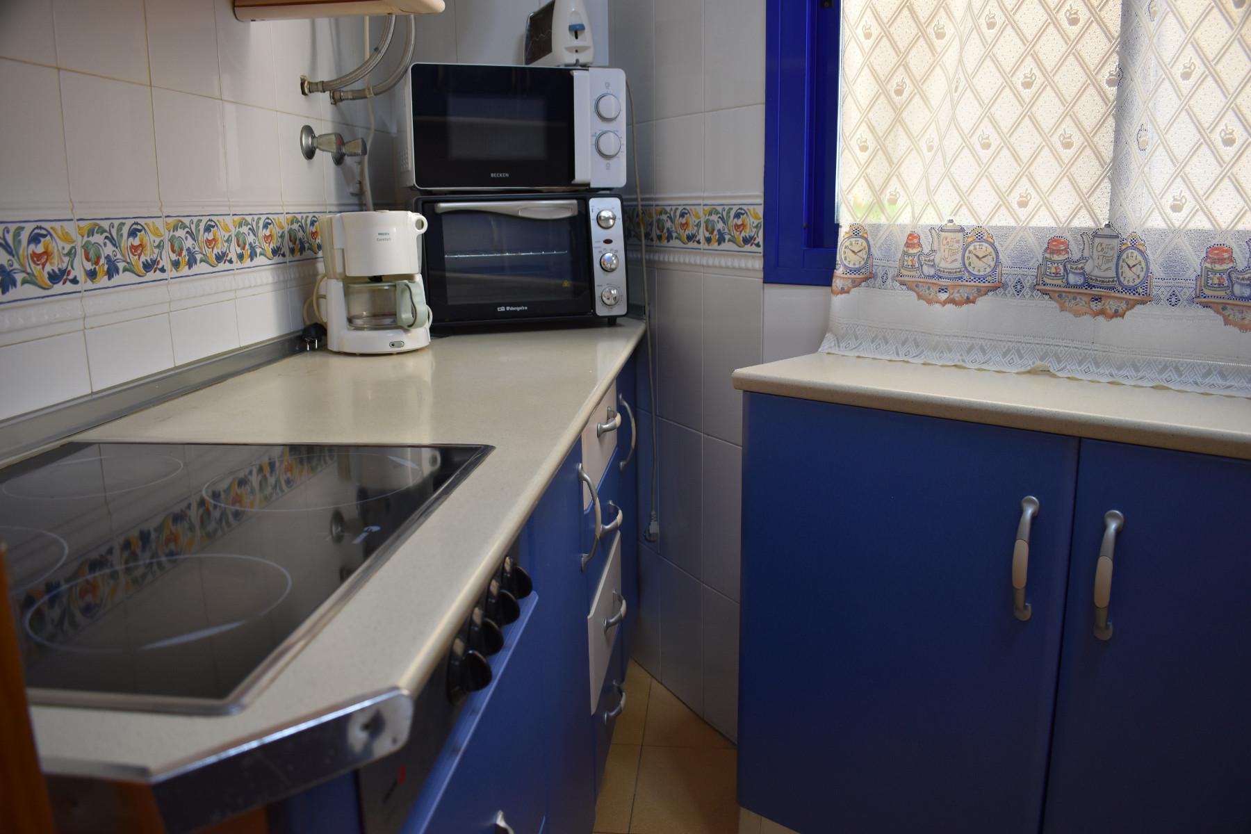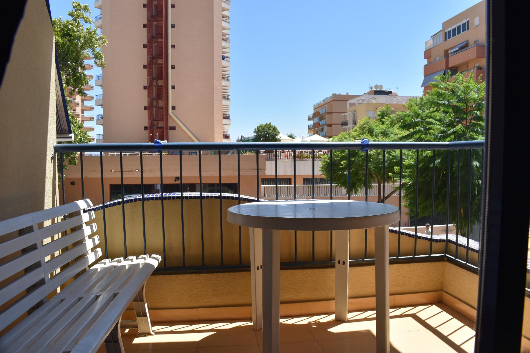 Keskeisellä paikalla Los Bolichesissa sijaitseva kahden makuuhuoneen ensimmäisen kerroksen huoneisto (suomalaisittain 2. kerros), jossa tilava olohuone/ruokailutila ja etelään avautuva pikku parveke. Toisessa kylpyhuoneessa suihku ja toisessa amme. Keittiössä sähköhella.