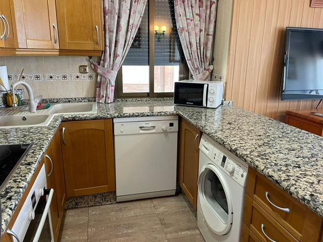Hyvin varusteltu keittiö tuo kodin tunnun ja pyykin käsittely on helppoa, koska asunnosta löytyy pyykinpesukoneen lisäksi kuivausrumpu.